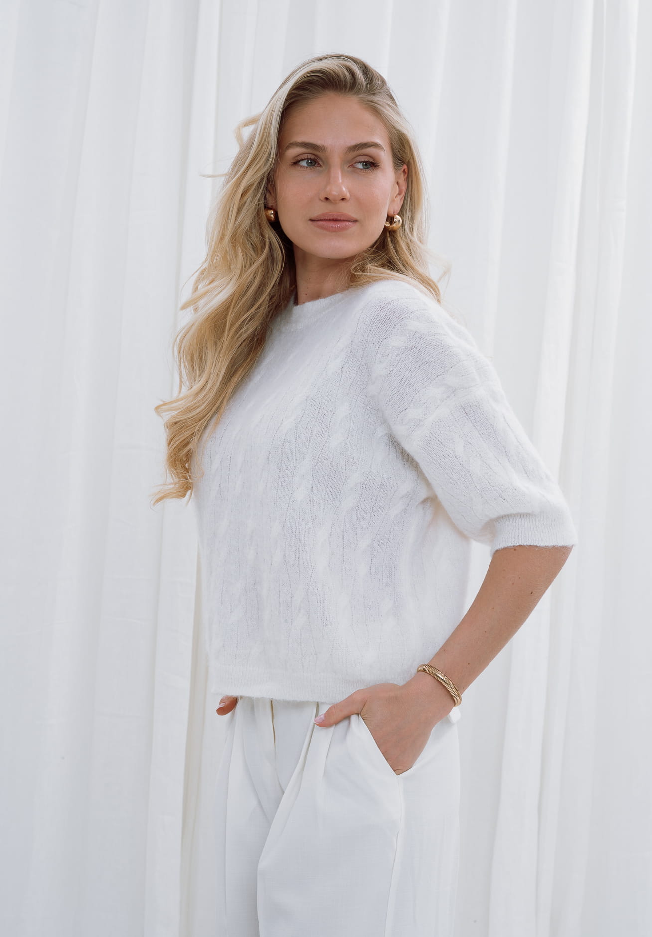 SWETER ELON ECRU kid moher