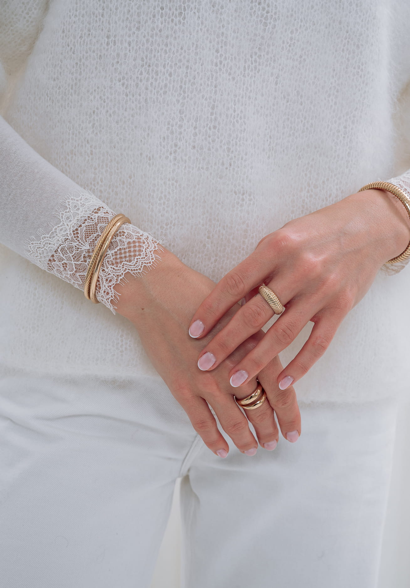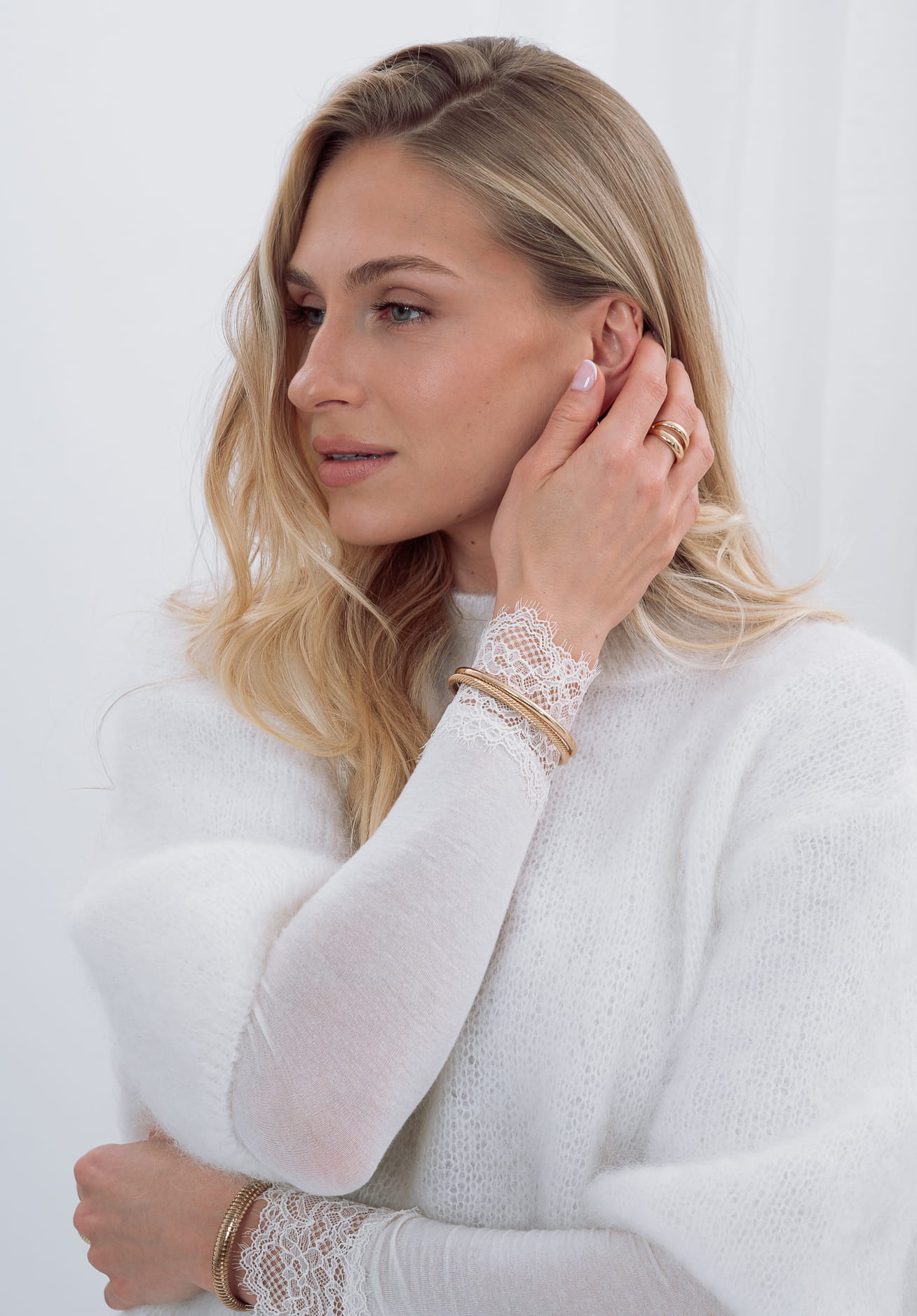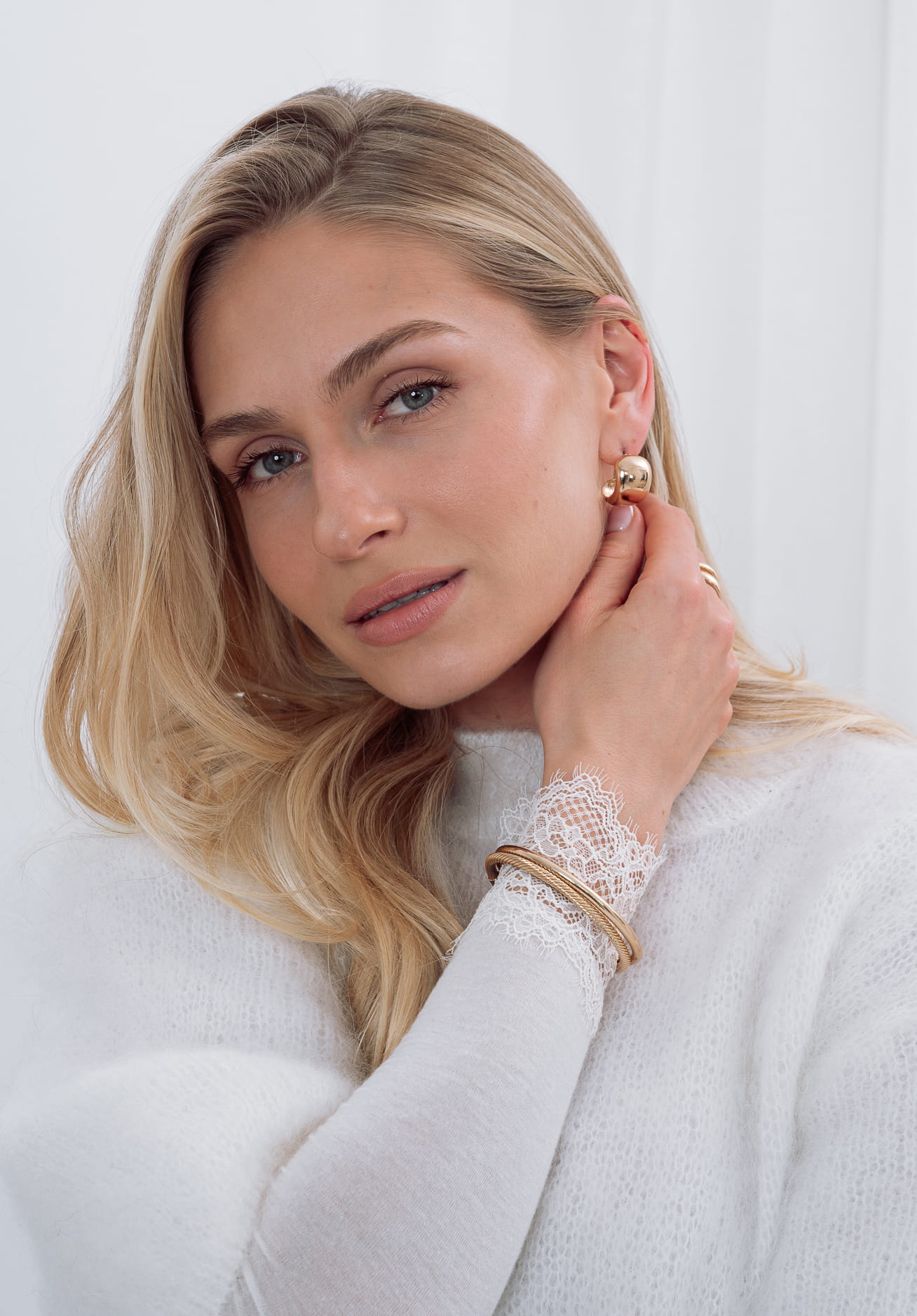 ✦ Sweter z okrągłym dekoltem o delikatnie luźniejszym fasonie ✦ Długość rękawów do łokcia ✦ Wykonany z niezwykle puszystej i lekkiej przędzy kid moher z widocznym włosiem ✦ Bardzo przyjemny i miękki w dotyku ✦ Może naturalnie gubić włoski